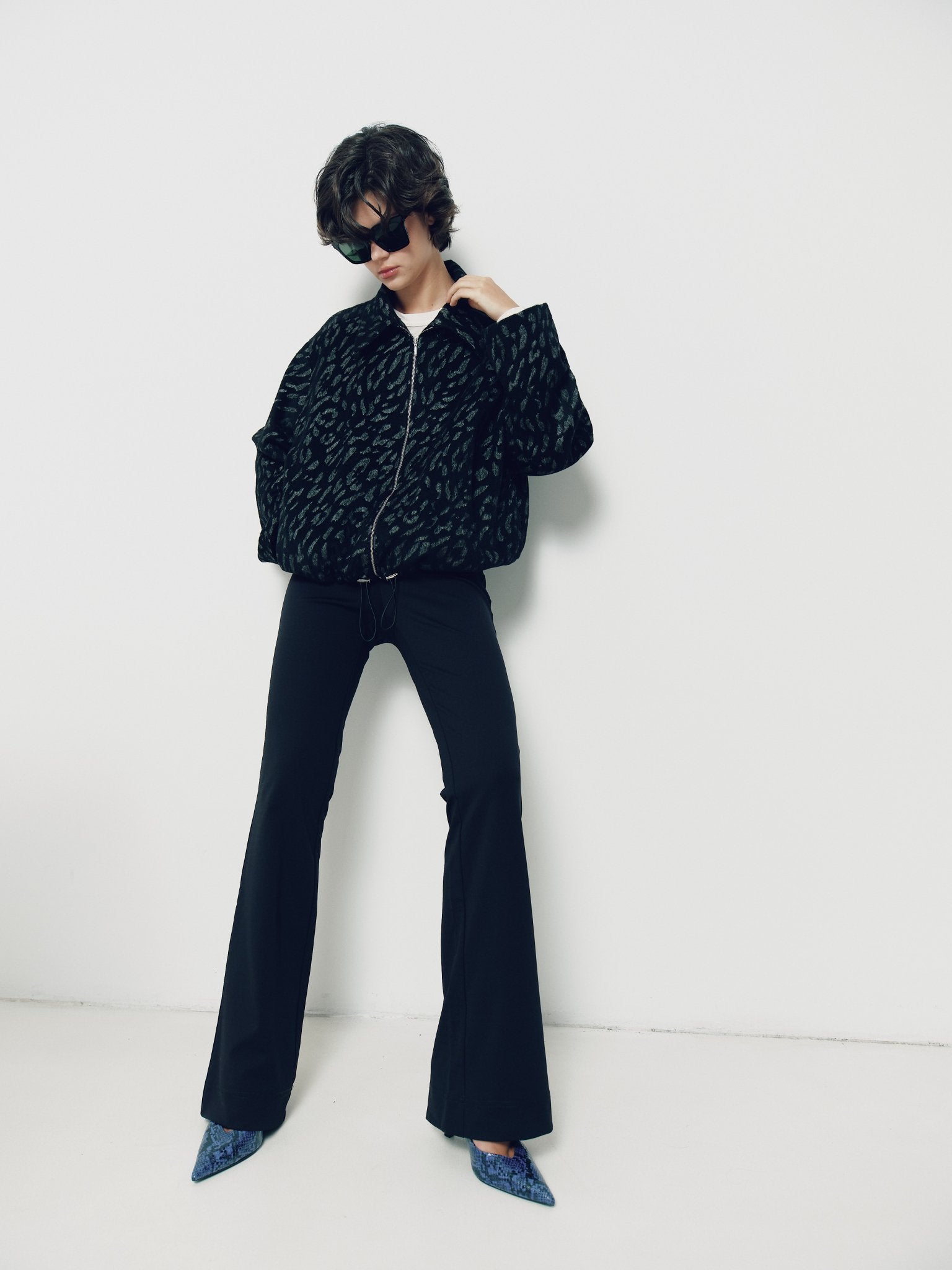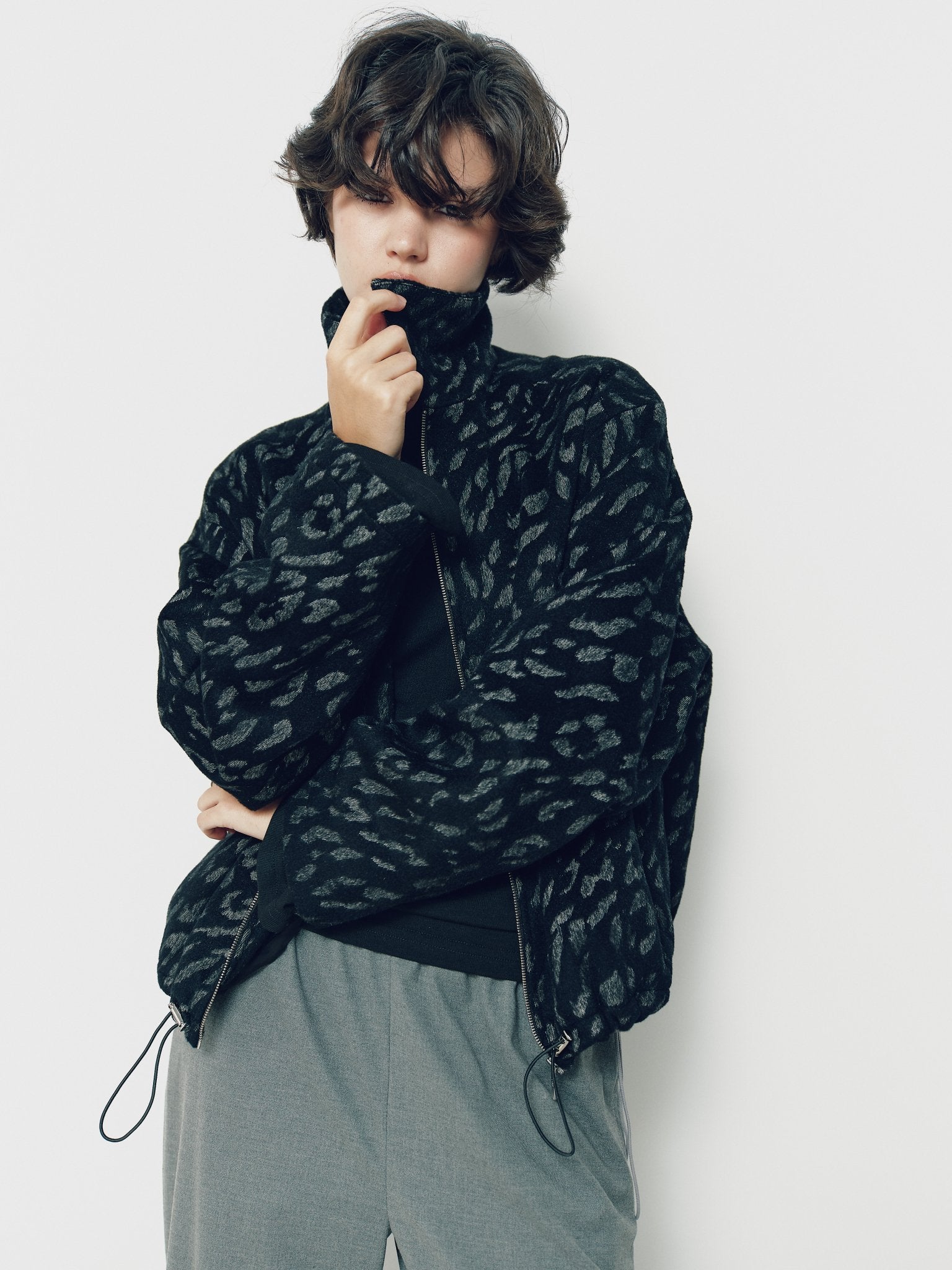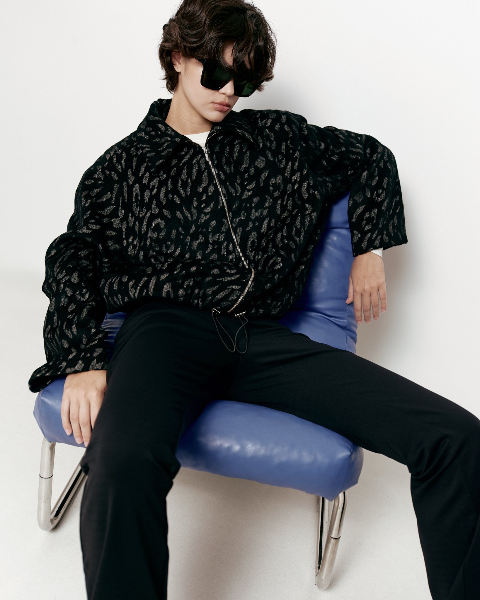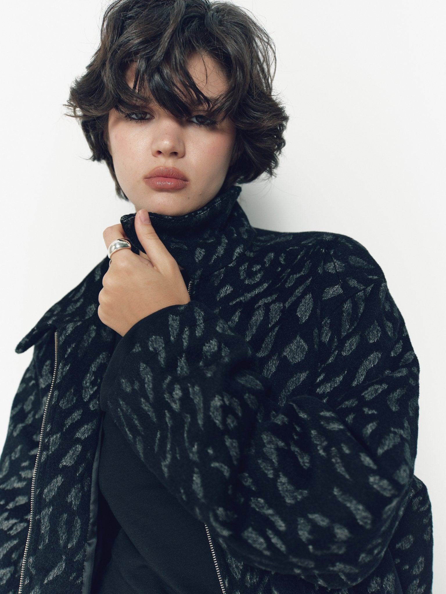 Оверсайз Бомбер з принтованоі шерсті темно-сірого кольору , з боковими кишенями на підкладці застібується на блискавку ykk