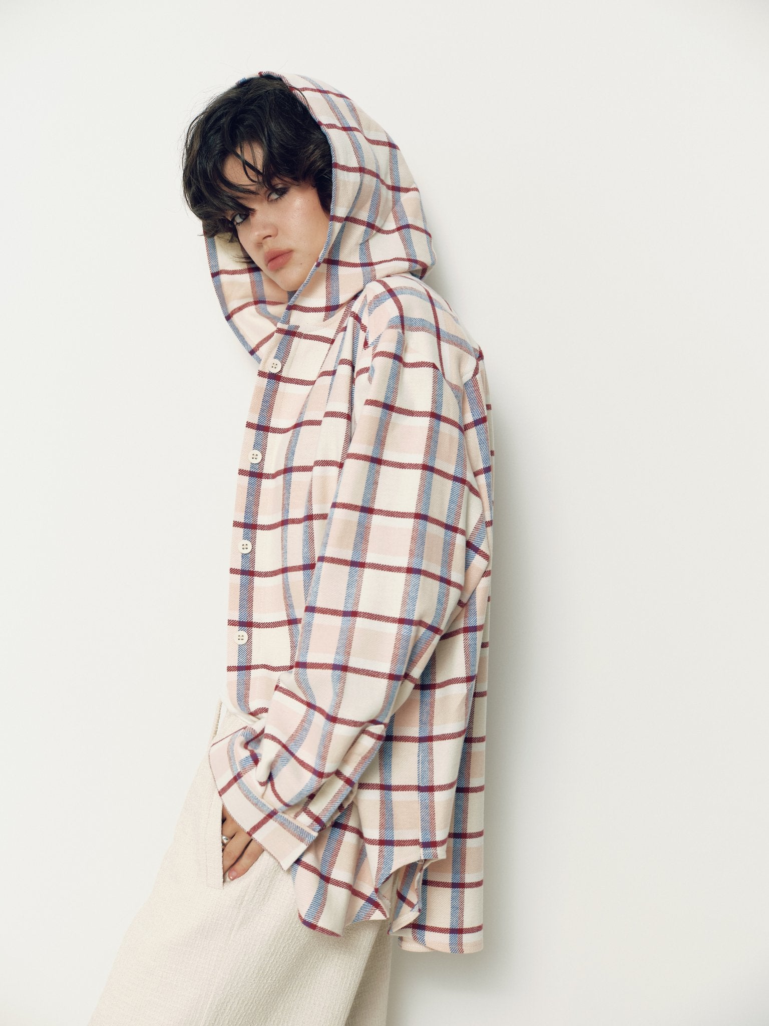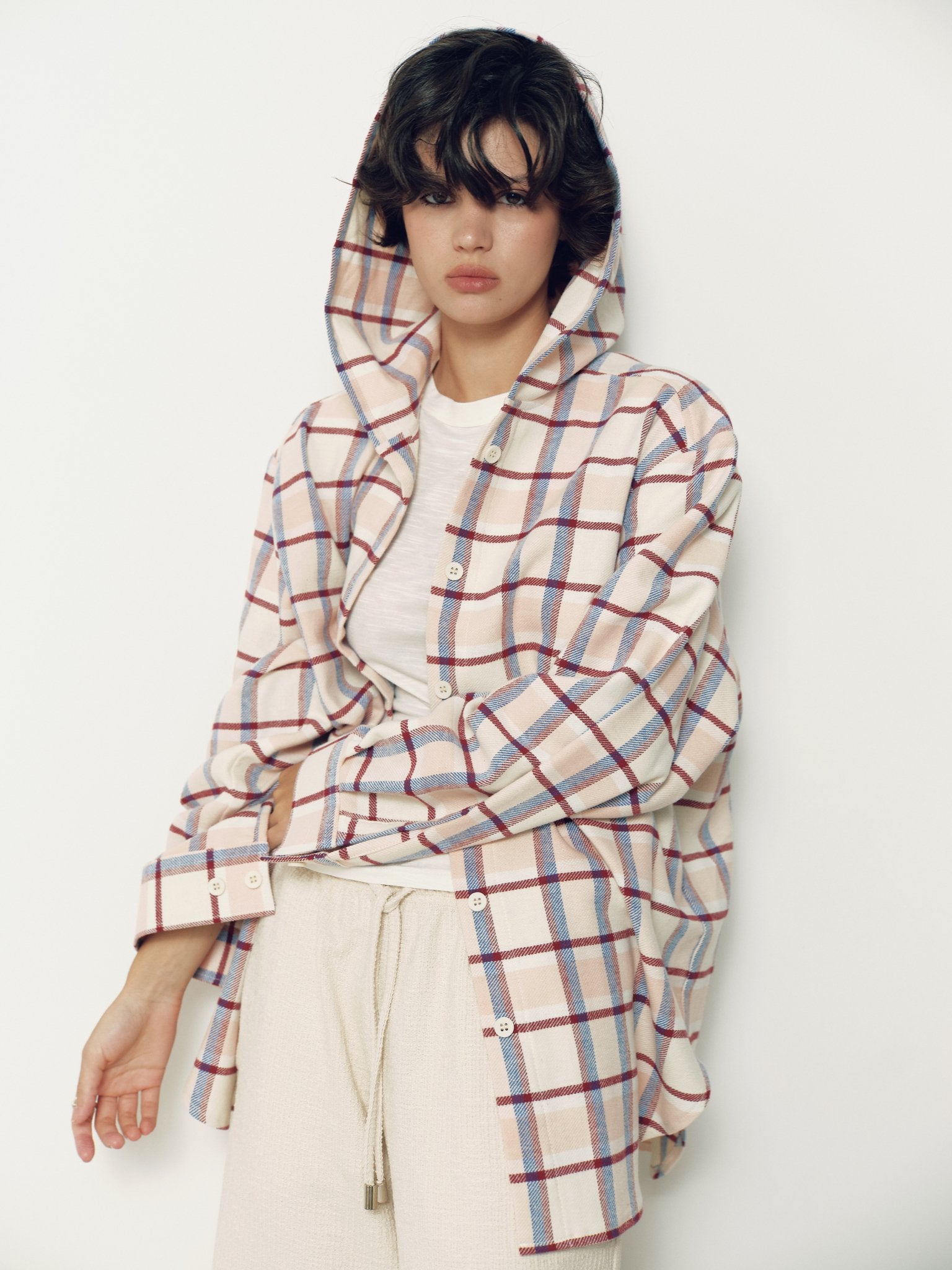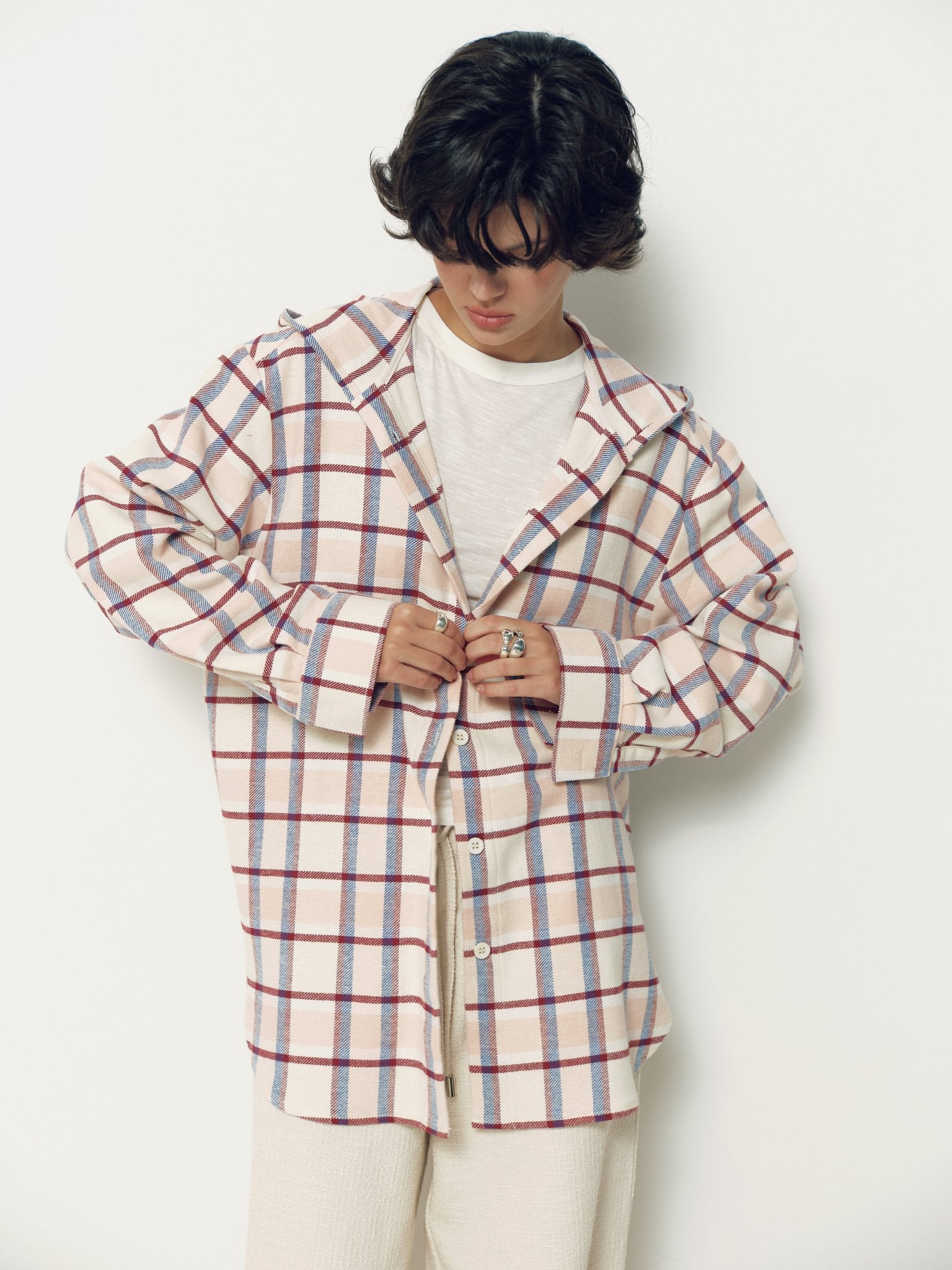 Сорочка вільного крою в різнокольорову клітинку, тканина фланель, розмір вансайз , без кишень на ґудзиках з капюшоном