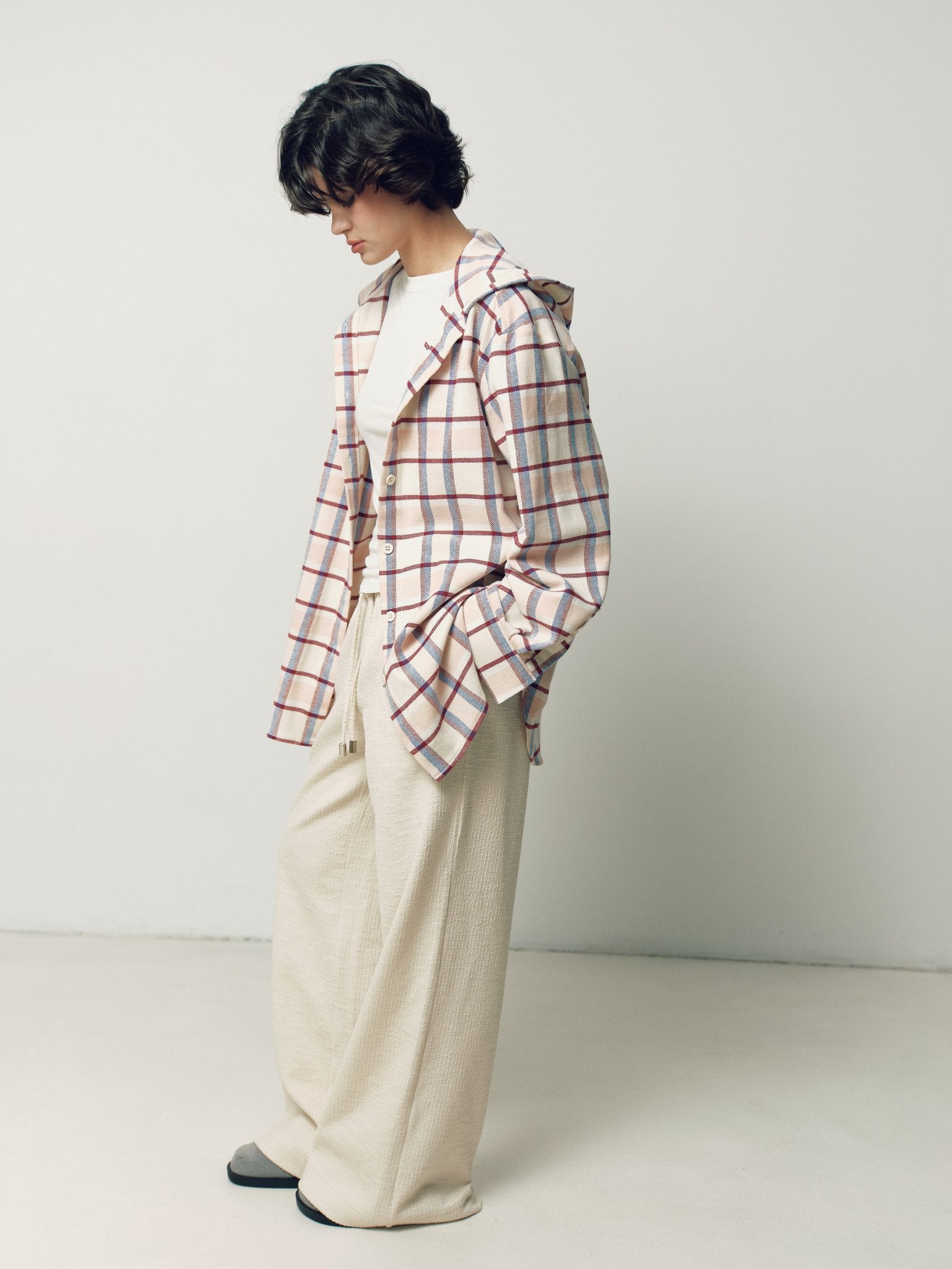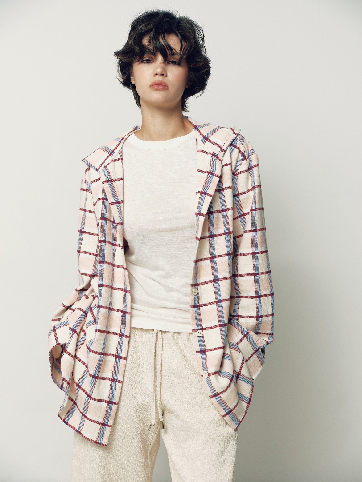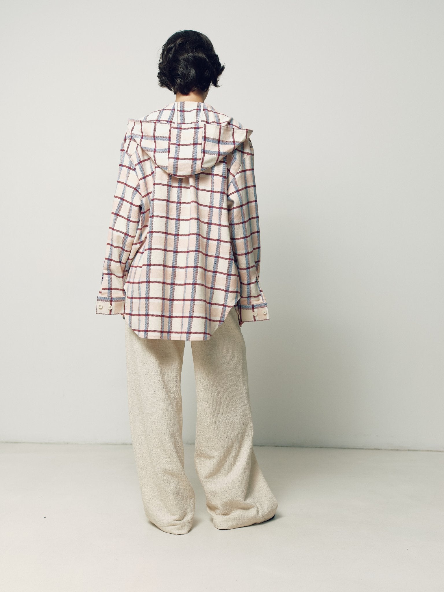 Сорочка вільного крою в різнокольорову клітинку, тканина фланель, розмір вансайз , без кишень на ґудзиках з капюшоном