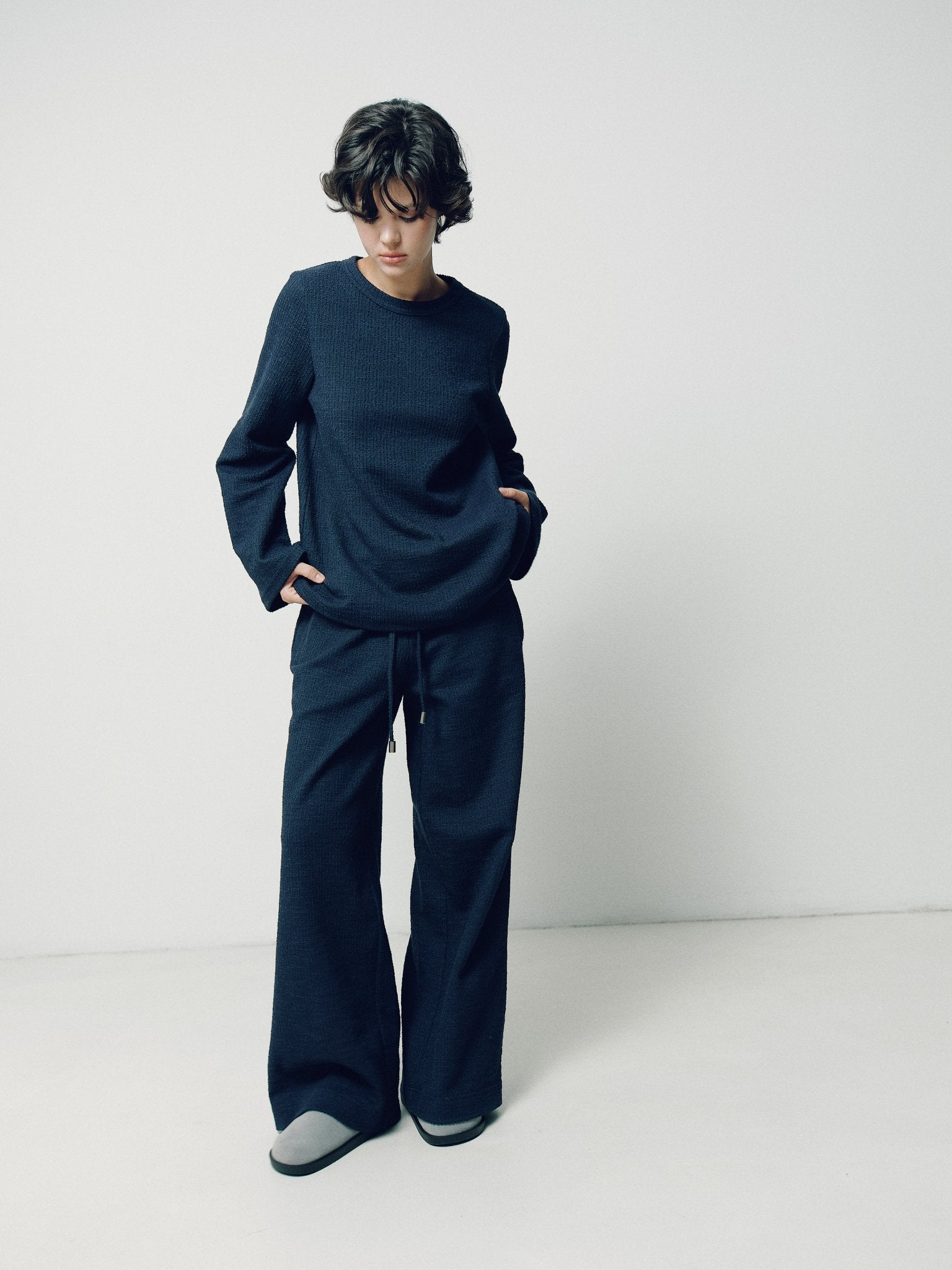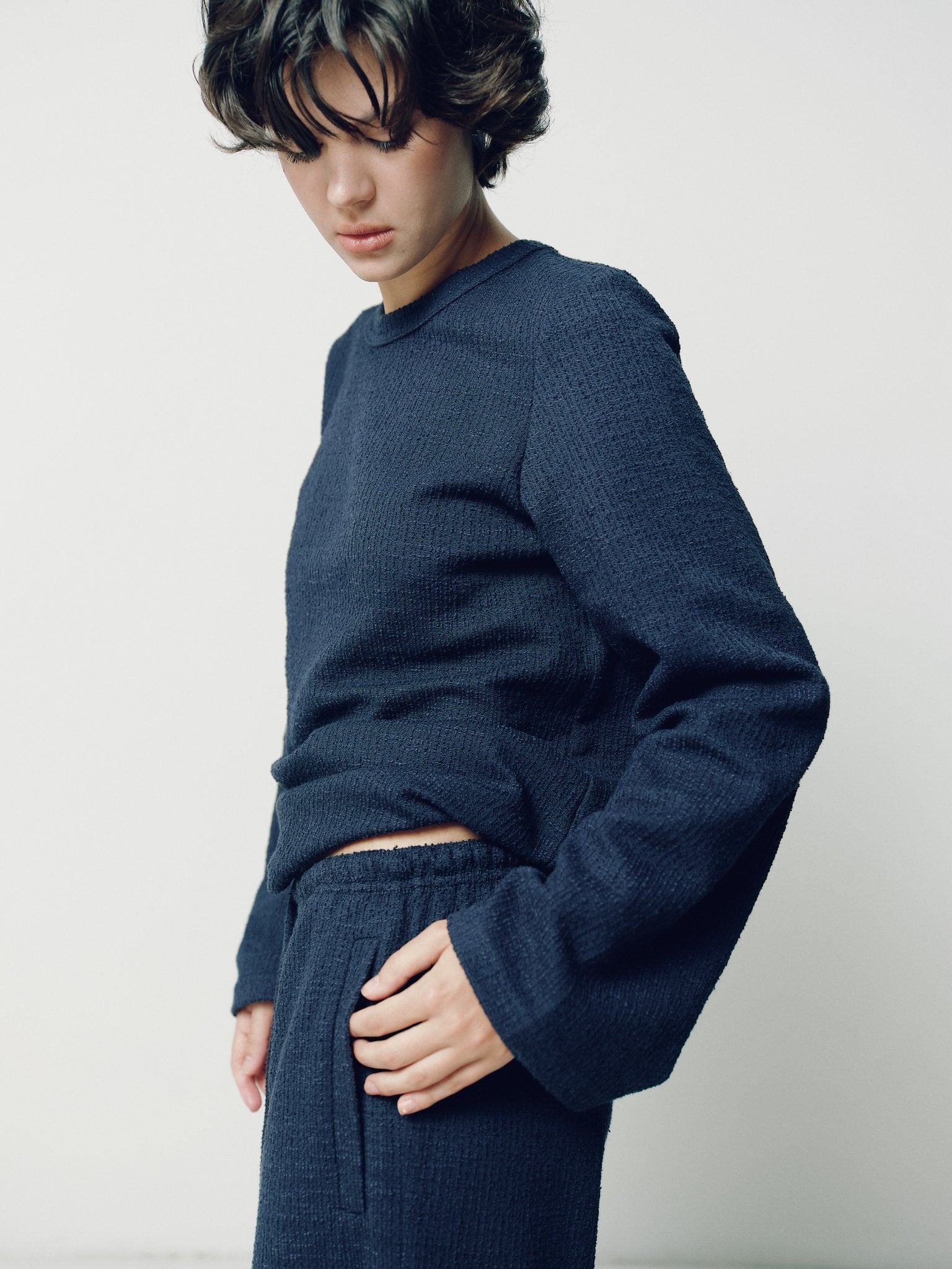 З фактурної тканини темно- синього кольору