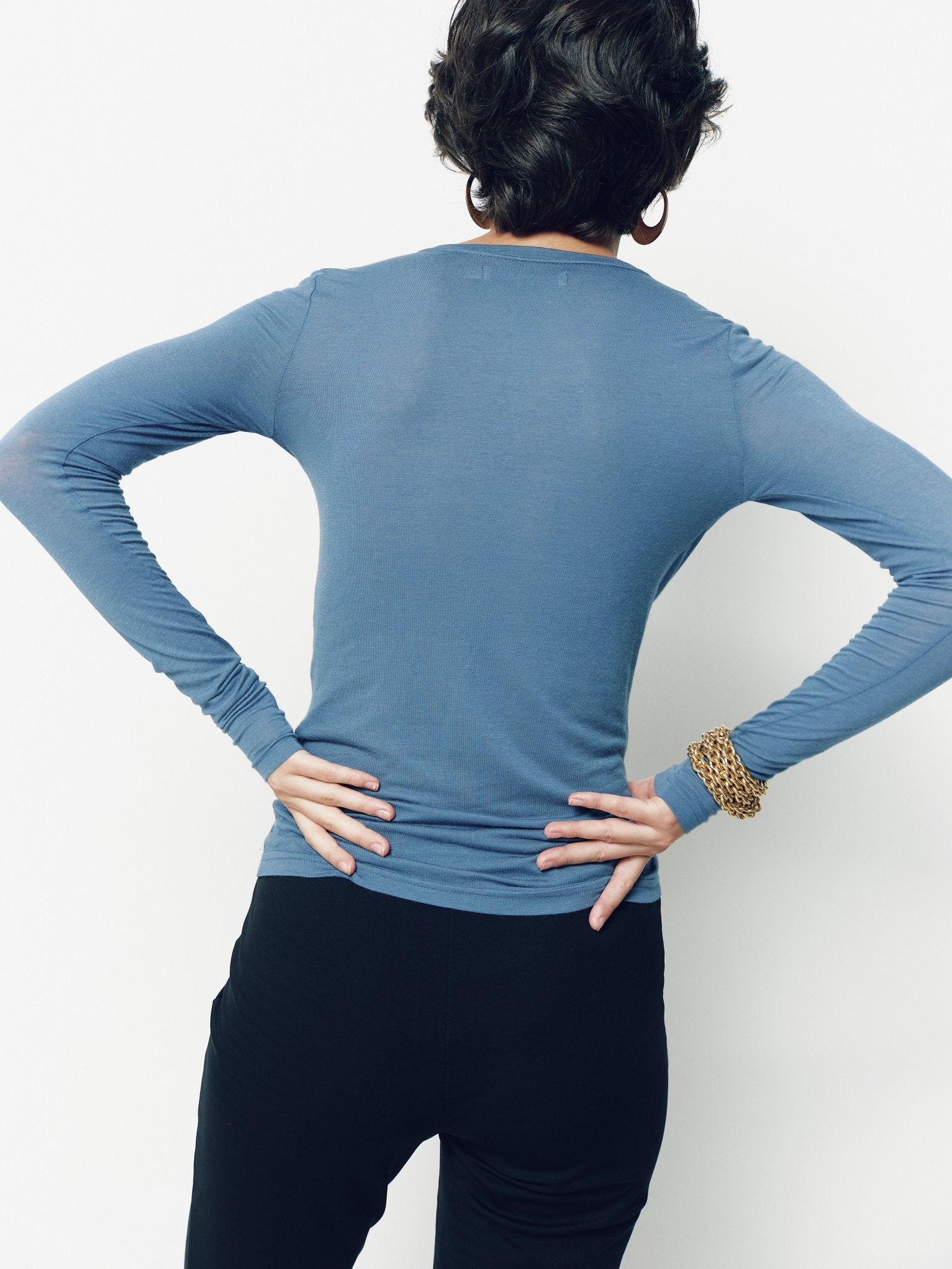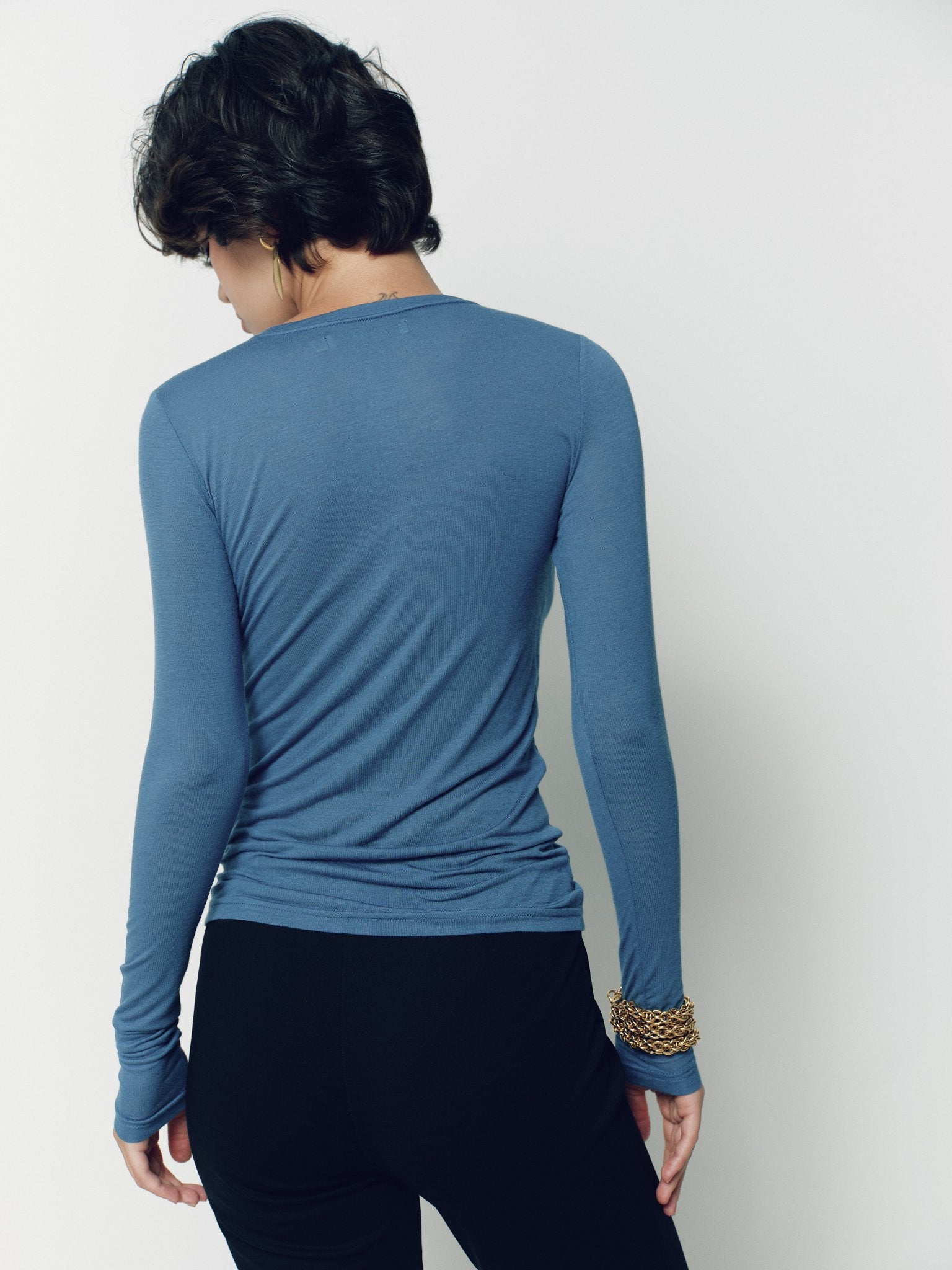 лонгслів у джинсовому кольору з драпіруванням по переду
