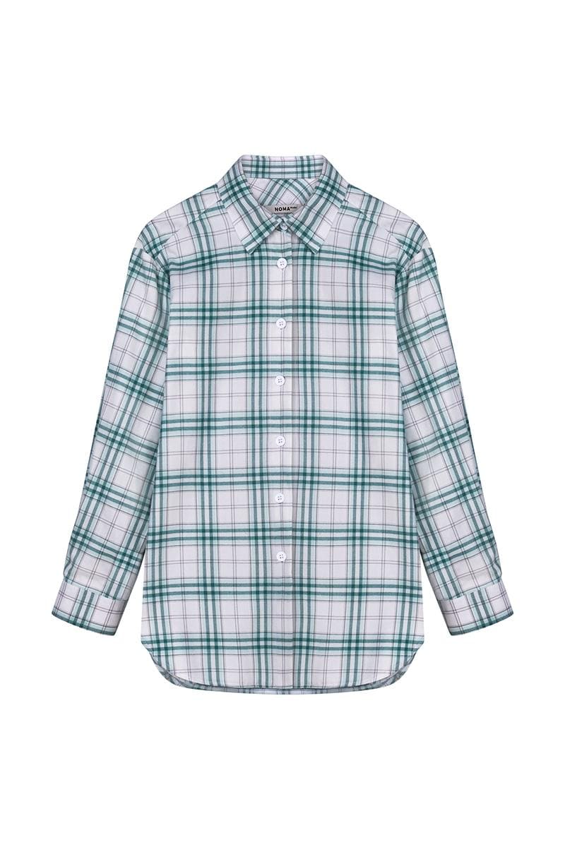 Сорочка вільного крою в різнокольорову клітинку , без кишень на ґудзиках